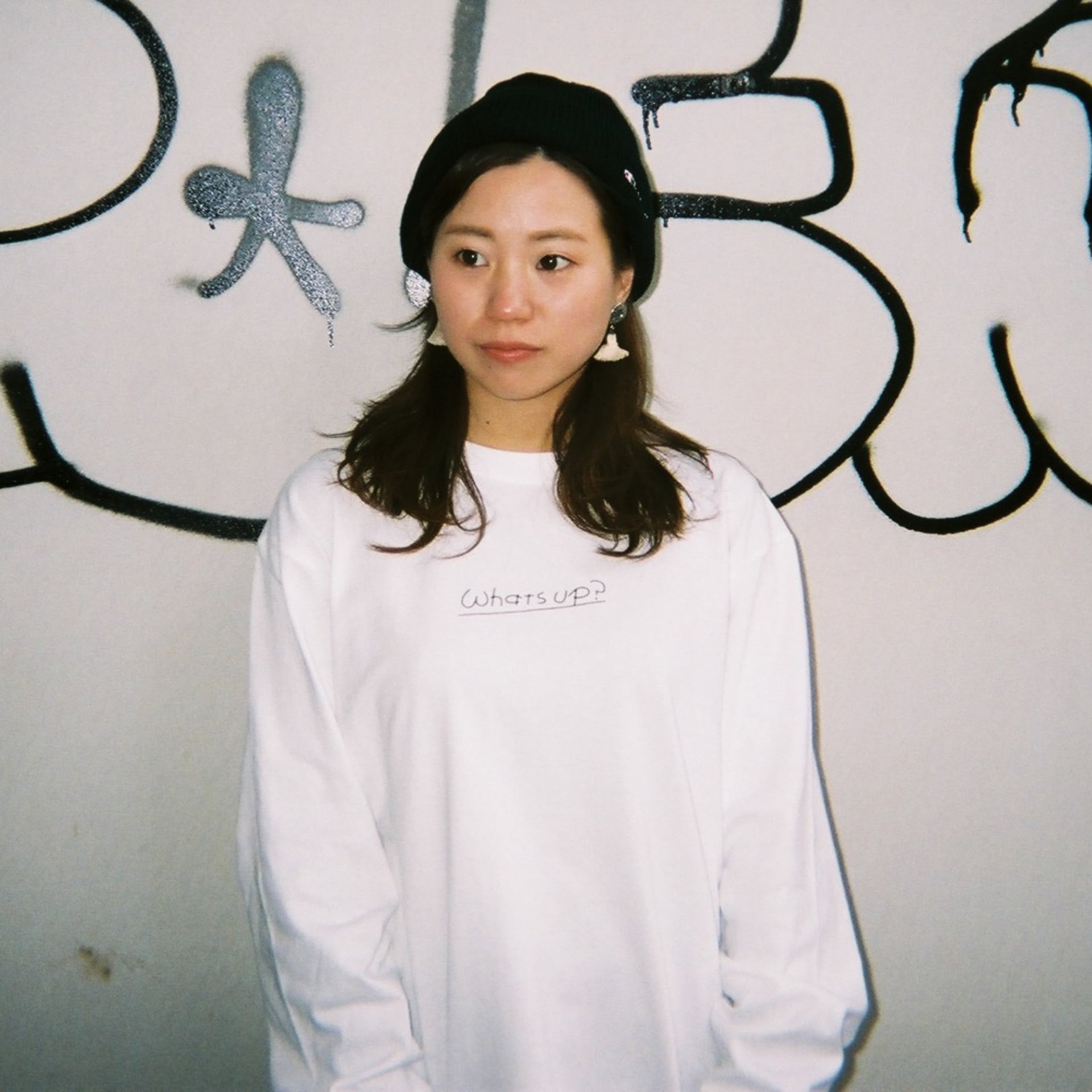 Mojiru.×ITAZURA Long t-shirt(white×black)